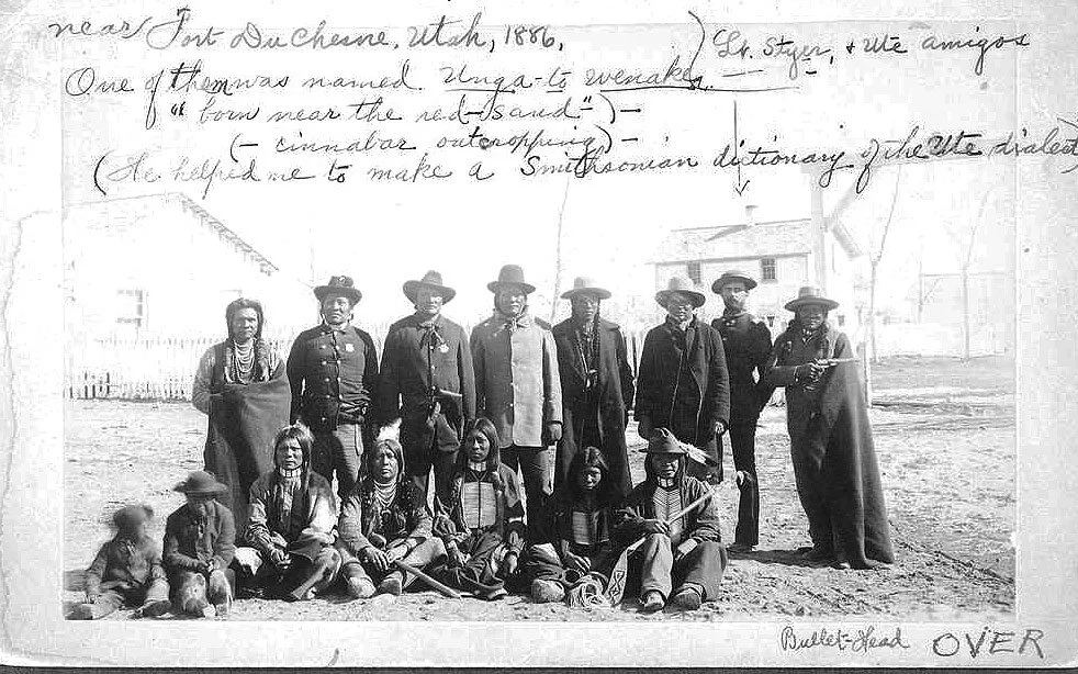 Lt. Henry D. Styer (standing, second from right) with Ute Indians near Fort Duchesne, Utah Territory, in 1886. (Credit: National Archives)