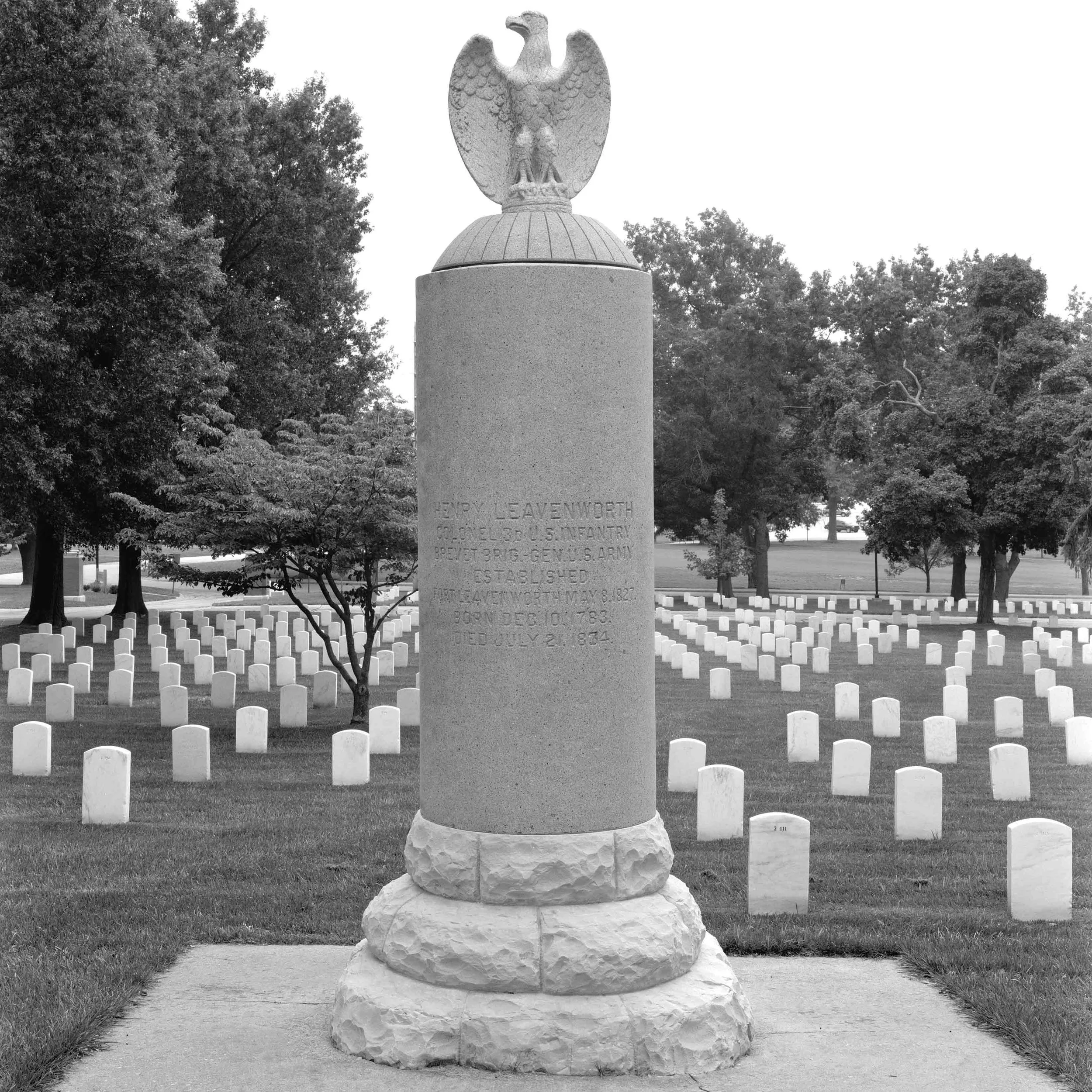 A monument honoring Henry Leavenworth at Fort Leavenworth National Cemetery in Kansas. (Credit: Library of Congress)
