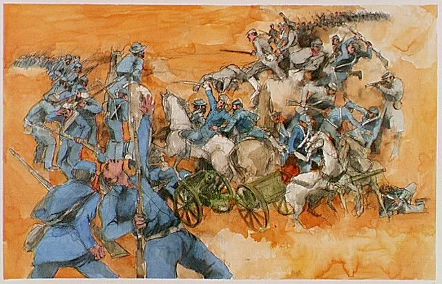 A watercolor illustration of fighting at Battle of Bull Run, July 21, 1861. (Credit: National Park Service)