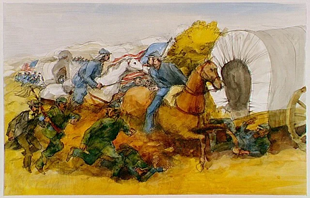 A watercolor illustration of Union troops fleeing the Battle of Bull Run, July 21, 1861. (Credit: National Park Service)