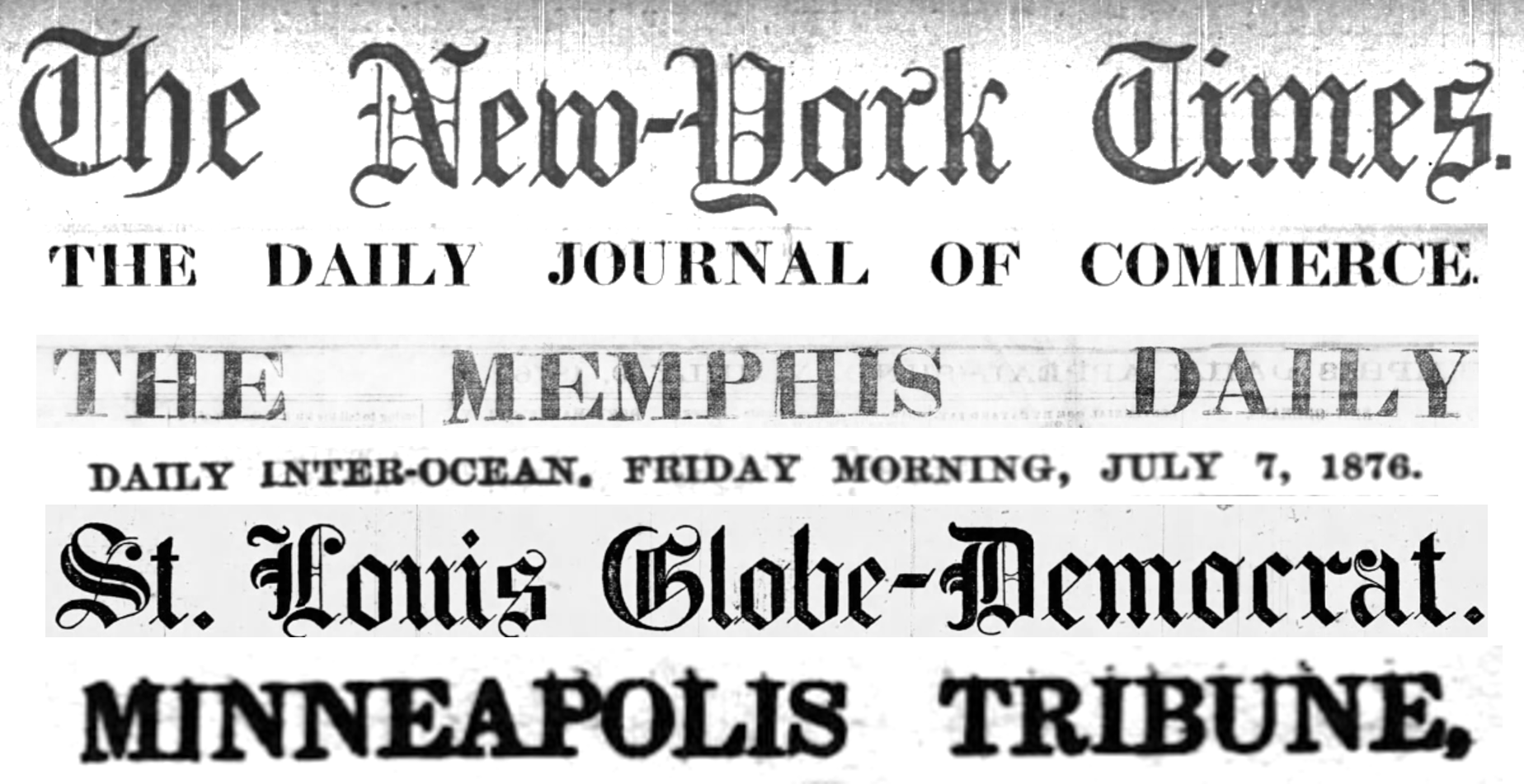 The Inter Ocean (Chicago), “The massacre of General Custer and five companies of the Seventh Cavalry by Sioux on the Little Big Horn River on the 25th is fully confirmed… The news which yesterday thrilled the nation by its awful vagueness and uncertainty now paralyzes the stoutest and make the bravest quail.”