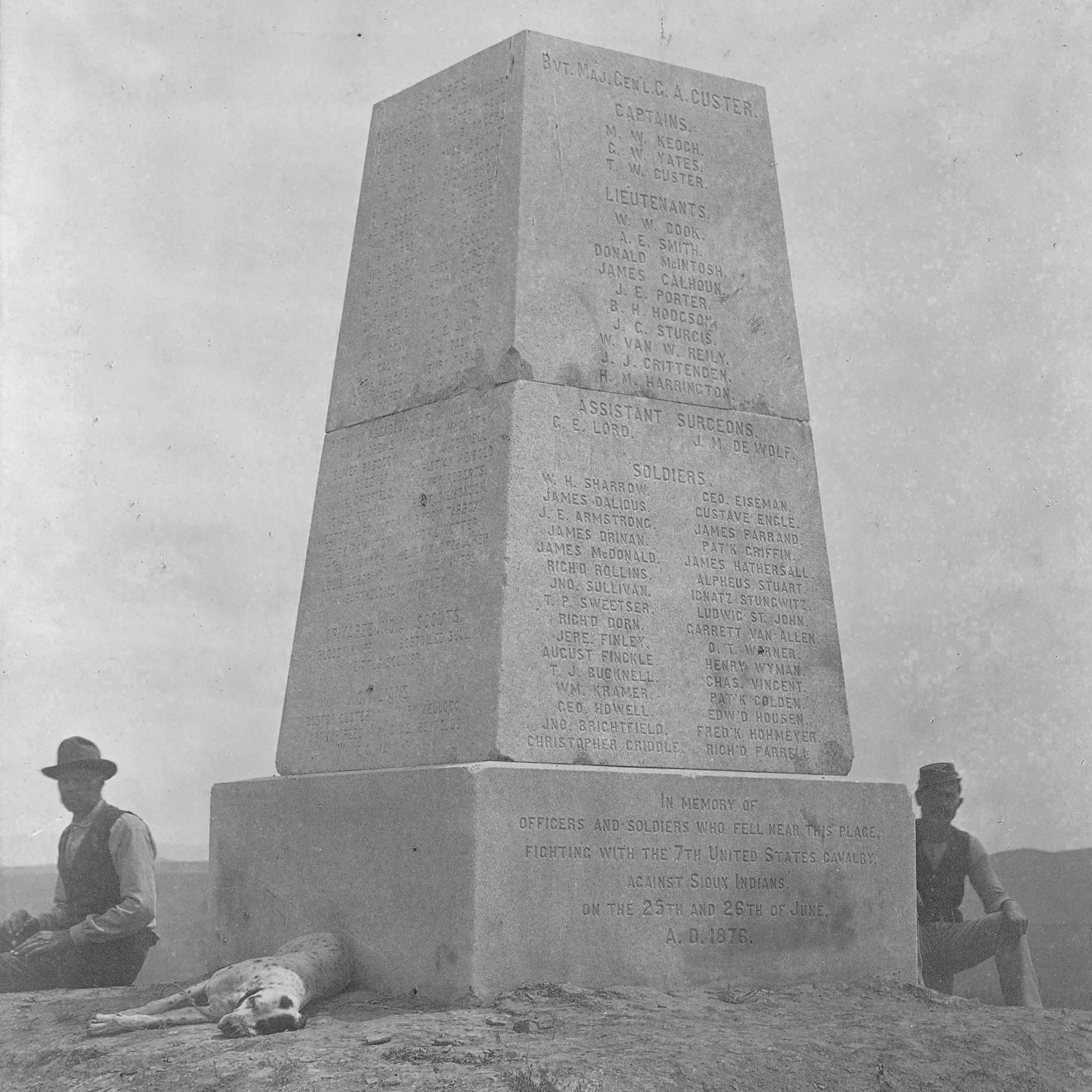 A 14-foot granite obelisk, a memory to the US cavalrymen killed at Little Bighorn, is erected on Las Stand Hill in July 1881.